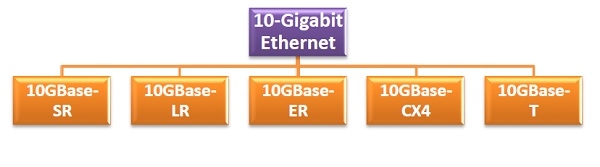 10GE 是標準乙太網的 1000 倍快,並且僅支援全雙工通訊。使用頻率為 0.85μ 的多模光纖用於中距離,使用頻率為 1.5μ 的單模光纖用於長距離。