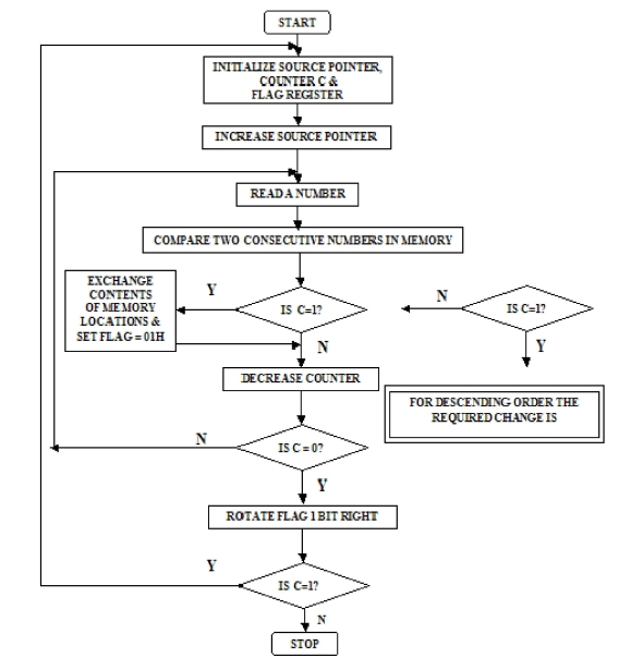 在這個程式中,我們將使用氣泡排序技術對數字進行排序。這種排序技術將執行多次傳遞。在每次傳遞中,最大的數字都儲存在列表的末尾。這裡我們從 8041H 到 8046H 獲取數字。陣列大小儲存在 8040H 中。