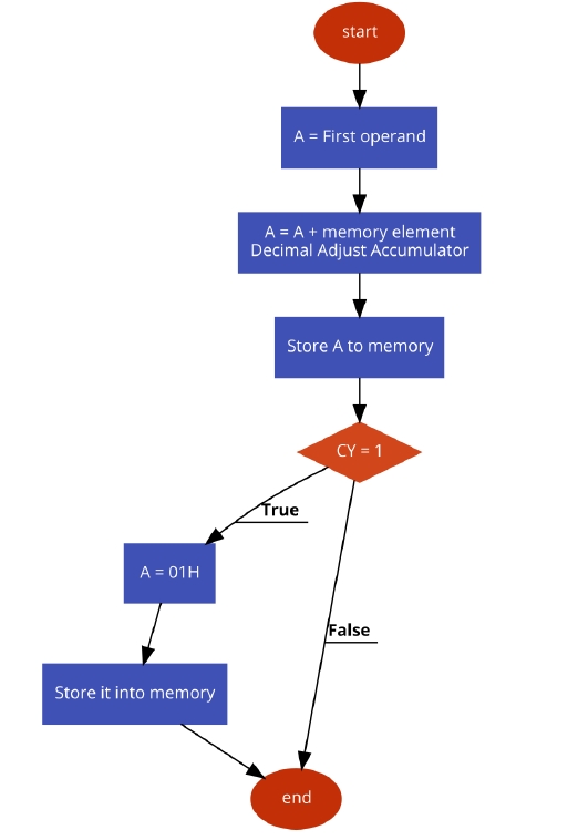 這項任務非常簡單。我們從記憶體中獲取數字,然後新增DAA指令以將累加器內容調整為十進位制形式。DAA將檢查AC和CY標誌以將數字調整為其十進位制形式。