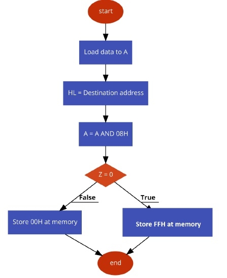 其背後的邏輯非常簡單。我們只是對給定資料與08H執行按位與運算。如果結果非零,則第4位為1,否則為0。