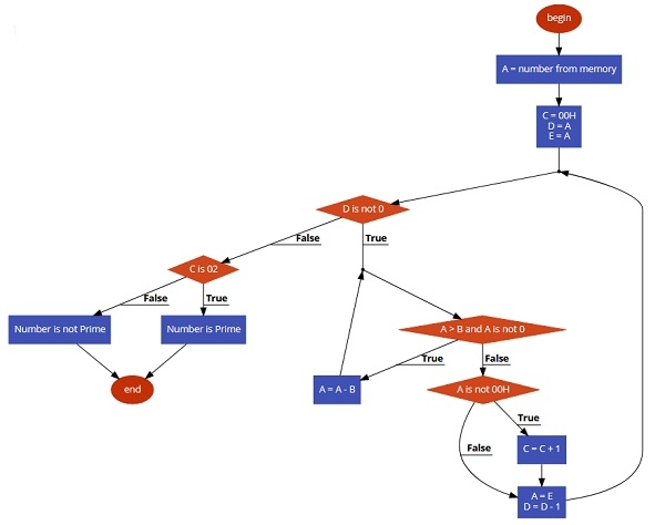 在這個程式中,我們將瞭解如何使用8085來檢查一個數字是否為素數。