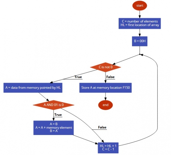 編寫 8085 組合語言程式以查詢儲存在陣列中的所有偶數的和。陣列的大小儲存在位置 F100;數字從記憶體位置 F101 開始儲存。結果將儲存在 F150 中。