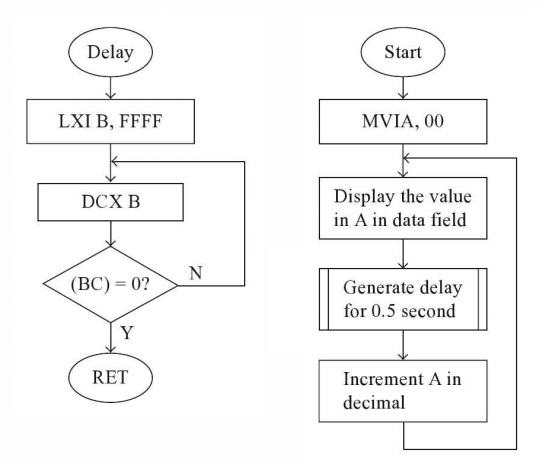編寫8085組合語言程式來模擬十進位制向上計數器。