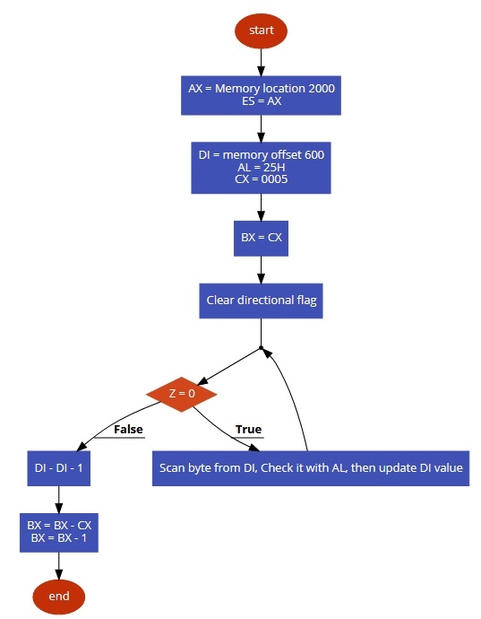 編寫 8086 組合語言程式,在字串(數字陣列)中查詢數字。這些數字儲存在從記憶體偏移量 600 開始的位置。