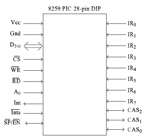 8259 稱為可程式設計中斷控制器 (PIC) 微處理器。在 8085 和 8086 中,分別有五個和兩個硬體中斷。透過新增 8259,我們可以提高中斷處理能力。該晶片將多箇中斷輸入源組合成單箇中斷輸出,提供從 IR0 到 IR7 的 8 箇中斷。讓我們來看一下該微處理器的部分特性。