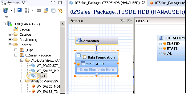 在 SAP HANA 中建立屬性和分析檢視作為持久模型