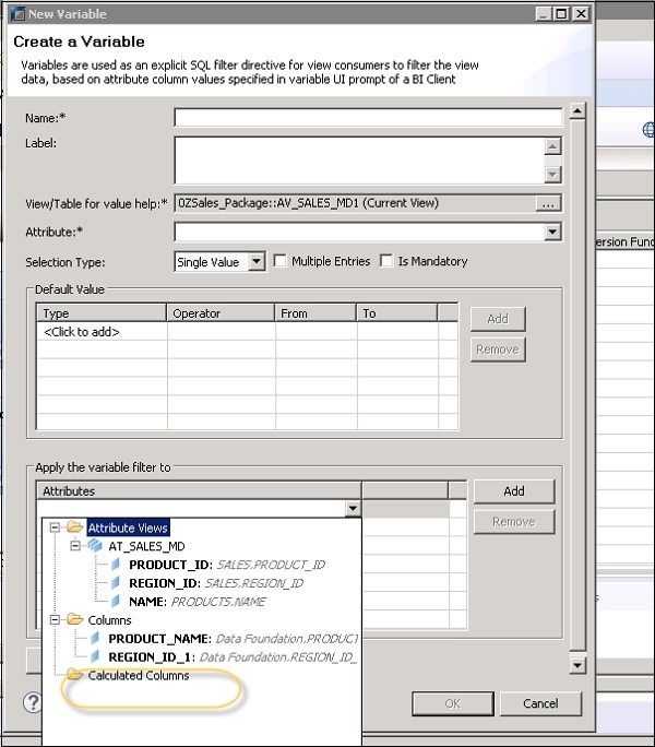 檢查 SAP HANA 中屬性檢視中的列屬性