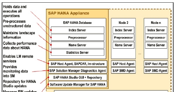 SAP HANA 包含多個元件,它為 HANA 提供高計算能力。SAP HANA 系統中最重要的元件是索引伺服器,其中包含 SQL/MDX 處理器來處理資料庫的查詢語句。