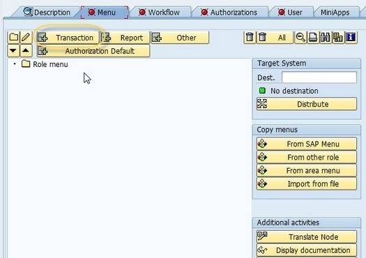 如果你想將交易新增到角色,你可以單擊交易選項卡並選擇交易程式碼。