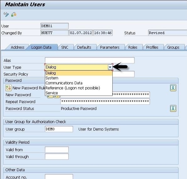 事務程式碼:SU01 用於在 SAP 系統中建立使用者。在以下螢幕中,你可以在 SU01 交易下看到 SAP 系統中的不同使用者型別。