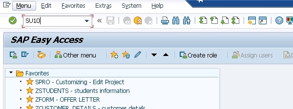 T 程式碼 − SU10 使用者批次維護