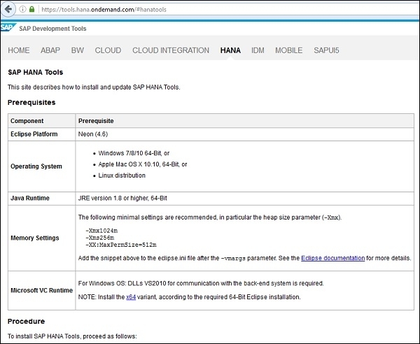 請注意,Eclipse Neon 與 SAP HANA Cloud 平臺不相容。請參閱以下相容性文件:https://tools.hana.ondemand.com/#hanatools