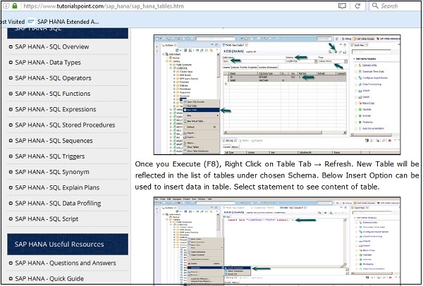 要了解更多有關 SAP HANA 中的架構和表的資訊,可以參閱以下連結:https://tutorialspoint.tw/sap_hana/sap_hana_tables.htm