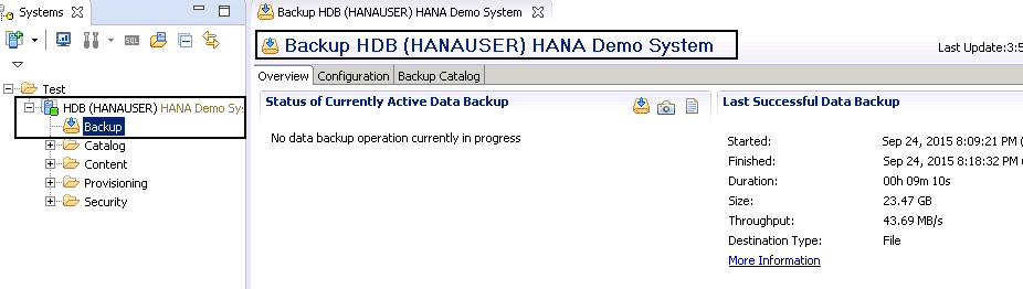 SAP HANA Studio 中的備份資料夾可用於管理 HANA 系統中的備份屬性。HANA 系統下的備份屬性特定於該系統。