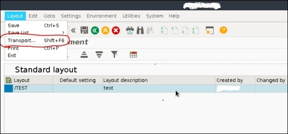 如果不屬於特定使用者,則可以將 ALV 佈局移植到其他系統。這可以透過提出自定義請求在“佈局管理”中執行。