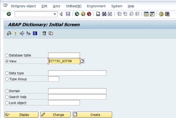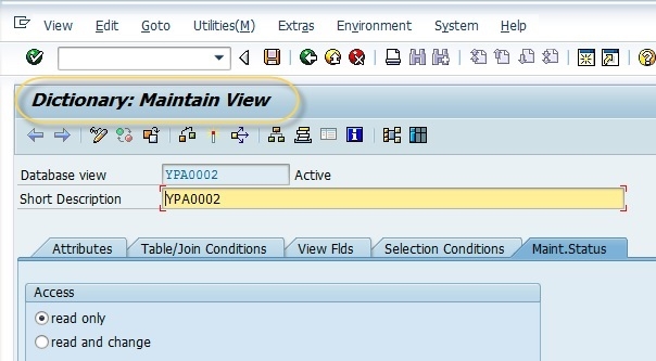 name = " ddname Name of the view to be written * dd25v_wa = ' ' " dd25v View header * dd09l_wa = ' ' " dd09v Technical settings of the view * TABLES * dd26v_tab = " dd26v Basis tables of the view * dd27p_tab = " dd27p View fields * dd28j_tab = " dd28j Join conditions of the view * dd28v_tab = " dd28v Selection conditions of the view EXCEPTIONS VIEW_NOT_FOUND = 1 " Header of the view could not be found NAME_INCONSISTENT = 2 " Name in Sources Inconsistent with NAME VIEW_INCONSISTENT = 3 " Inconsistent Sources PUT_FAILURE = 4 " Write Error (ROLLBACK Recommended) PUT_REFUSED = 5 " Write not Allowed . " DDIF_VIEW_PUT DDIF_VIEW_ACTIVATE: Interface for activating a view EXPORTING name = " ddname Name of view to be activated * auth_chk = 'X' " ddbool_d 'X': Perform authorization check for DB operations * prid = -1 " sy-tabix ID for Log Writer IMPORTING rc = " sy-subrc Result of Activation EXCEPTIONS NOT_FOUND = 1 "View not found PUT_FAILURE = 2 "View could not be written . " DDIF_VIEW_ACTIVATE
