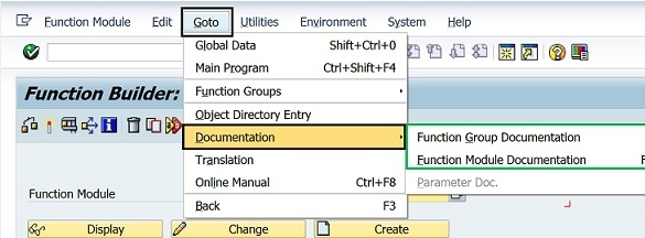 這兩個檢視都可以用於 T 程式碼:SE80 或 SE37。你可以使用這兩個事務顯示 SAP 系統中可用的 SAP 函式模組文件。