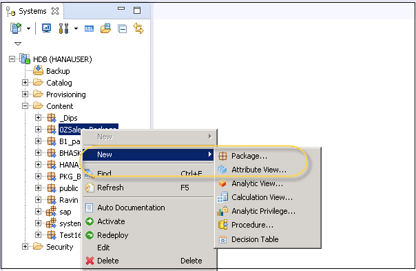 要建立新的屬性檢視,請選擇要在此其下建立屬性檢視的包名稱。右鍵單擊包 → 轉至新建 → 屬性檢視