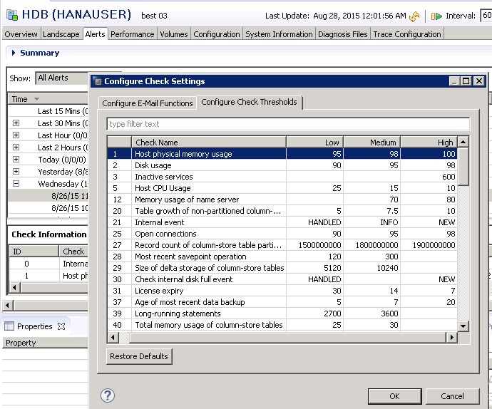可以在 **Configure → Configure Check Thresholds** 下定義這個。你可以為這些引數定義低、中、高值。