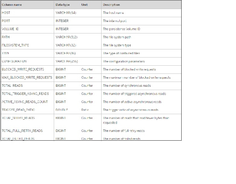 可以在 SAP HANA 中的 M_VOLUME_IO_TOTAL_STATISTICS 系統檢視中找到詳細資訊