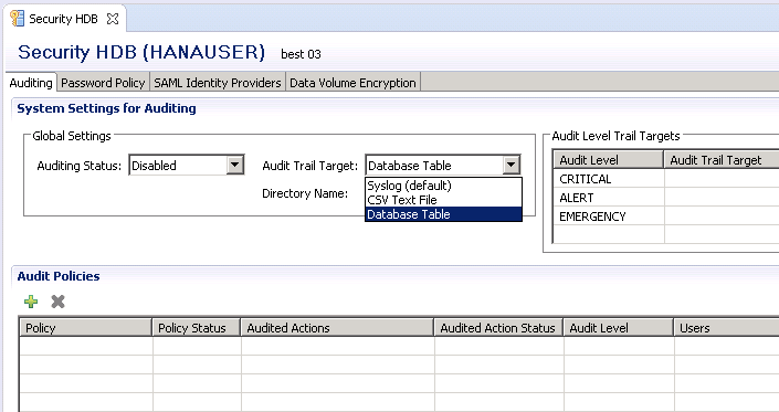 在 SAP HANA 系統中,下列審計日誌目標是可能的 −