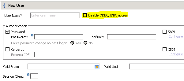 當你建立一個新使用者時,你需要選擇-停用 ODBC/JDBC 訪問的複選框