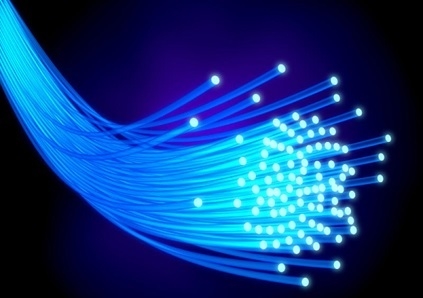 光纖電纜是由玻璃或塑膠製成的透明、柔韌的纖維,光波可以穿過它。下圖顯示了一束光纖電纜: