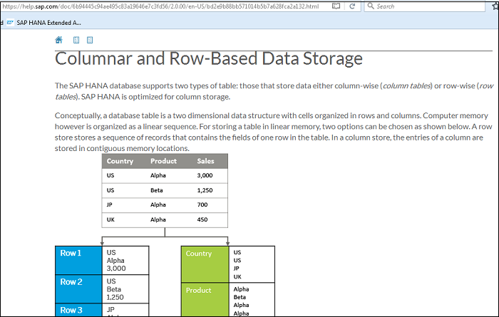 如需瞭解有關行儲存和列儲存表的詳細資訊,請參閱下面的連結:SAP HANA 已針對列儲存進行最佳化。