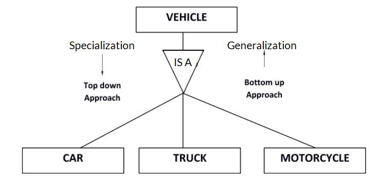我們可以有三個子實體,如汽車、卡車、摩托車,這三個實體可以泛化為一個通用父類,如車輛。