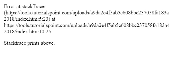 若要獲取 JavaScript 堆疊跟蹤,只需將以下內容新增到你的程式碼中。它將顯示堆疊跟蹤 −