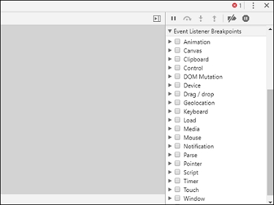 轉至右側的 Event Listener Breakpoints(事件偵聽器斷點)