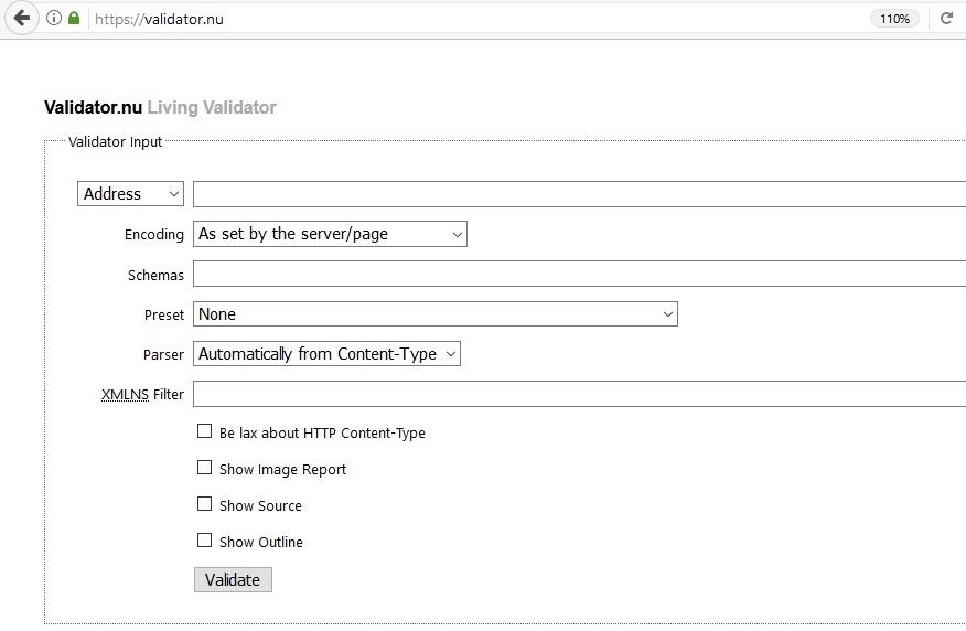 它檢查HTML文件型別和標記。這個驗證器適用於使用HTML4或XHTML1.x文件型別的人。它也驗證HTML5,但Validator.nu被認為更好,因為它更新穎。