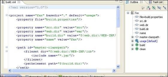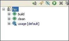 點選目標 build/clean/usage 將使用該目標執行 Ant。點選“fax”將執行預設目標 - usage。