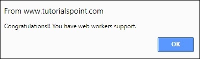 <!DOCTYPE HTML> <html> <head> <title>Big for loop</title> <script src = "/js/modernizr-1.5.min.js"></script> <script> function myFunction(){ if (Modernizr.webworkers) { alert("Congratulations!! You have web workers support." ); } else{ alert("Sorry!! You do not have web workers support." ); } } </script> </head> <body> <button onclick = "myFunction()">Click me</button> </body> </html>