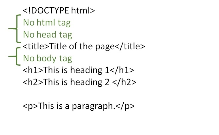 <!DOCTYPE html> <title>Title of the page</title> <h1>This is heading 1</h1> <h2>This is heading 2 </h2> <p>This is a paragraph.</p>