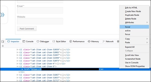 以下螢幕截圖顯示如何除錯懸停問題 −