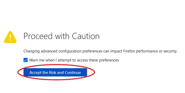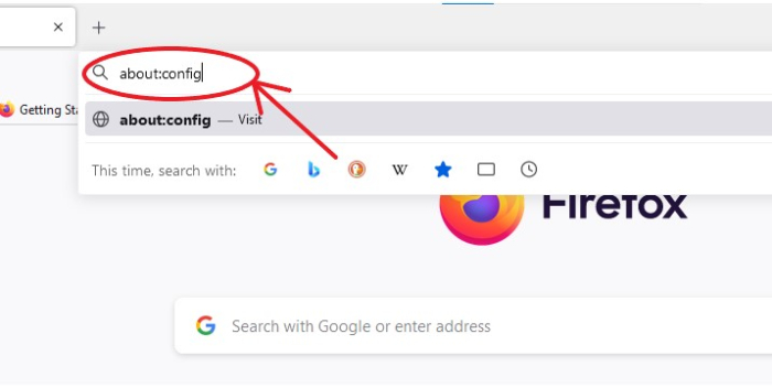 步驟 1 − 在 Firefox 中,在位址列中輸入 about:config 並按回車鍵。