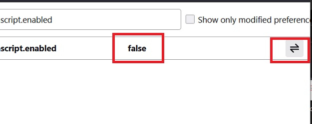 步驟 4 − 要將 javascript.enabled 設定為 false,請單擊螢幕最右側的切換按鈕。