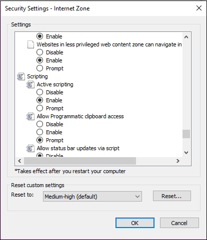 到達安全性設定後,轉到指令碼,然後轉到活動指令碼。