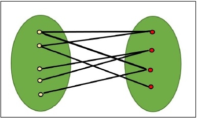 當圖中的頂點可以分成兩個獨立的集合,使圖中的每條邊要麼從第一個集合開始並結束於第二個集合,要麼從第二個集合開始並連線到第一個集合,換句話說,我們可以說在同一個集合中找不到邊,則該圖被稱為二分圖。