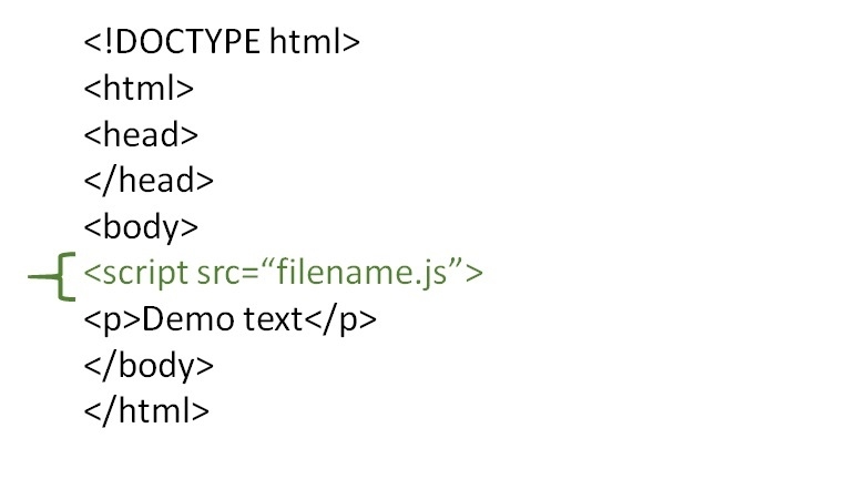 <!DOCTYPE html> <html> <body> <h2>Alert Button</h2> <p> <External JavaScript file is myscript.js/p> <button type="button" onclick="sayHello()">Click</button> <script src="myscript.js"></script> </body> </html>