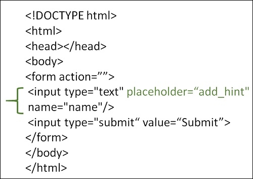 如果要為文字區域或輸入欄位設定提示,請使用 HTML placeholder 屬性。該提示是預期值,它會在使用者輸入值(例如姓名、詳細資訊等)之前顯示。