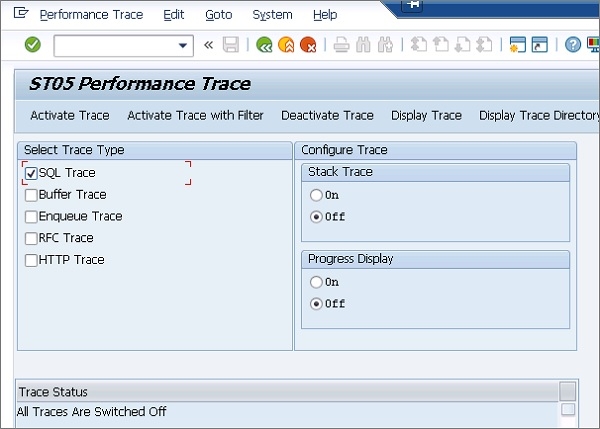 你還可以使用 T 程式碼 ST05 來衡量程式的效能。此事務用於執行 SAP 系統中的效能跟蹤。