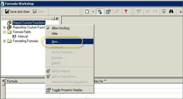 {@A}:if {PR.cov} = "A" then 1 else 0要在 Crystal Report 中建立自定義函式,請導航至報表選單 → 公式專家 → 在自定義函式上右鍵單擊 → 新建
