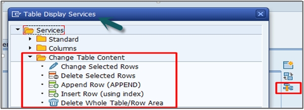 你可以在 Table 工具/Table 顯示服務中找到插入一行到表內或更改表內容的選項