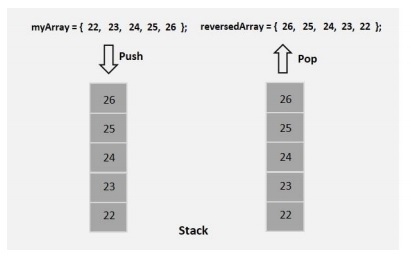 若要使用棧來反轉陣列,請先使用 push() 方法將所有元素進棧,然後再使用 pop() 方法將它們檢索到另一個數組中。