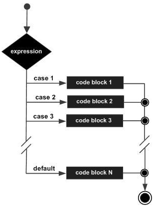 switch 語句可以有一個可選的 default case,它必須出現在 switch 的末尾。default case 可用於在沒有 case 為 true 時執行任務。在 default case 中不需要 break。