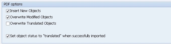 當您的匯出檔案包含 PDF 表單時,您可以組合使用“PDF 選項”分組框中的任何複選框來精確指定如何將翻譯後的物件匯入系統。