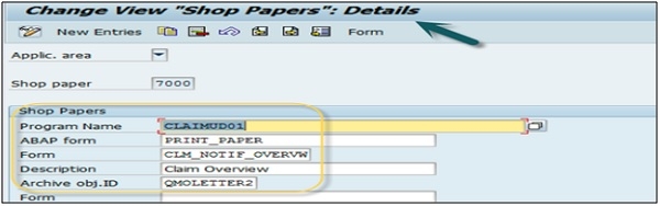 檢視通知型別的車間檔案,並提及車間檔案具有 ABAP 表單和列印程式,如下所示 -