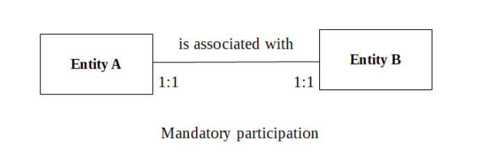 在必須參加中,對於實體 A 的每個例項,必須存在實體 B 的一個例項,反之亦然。